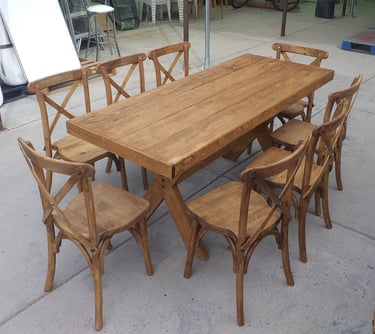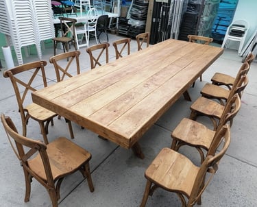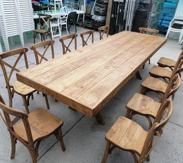 Somos fabricantes directos de la icónica Silla Cross back y una amplia gama de tablones y mesas para restaurante. Utilizamos maderas selectas y procesos de estufado que garantizan estabilidad y firmeza. Ya sea para equipar un comedor comercial o renovar el inventario de una alquiladora, nuestros acabados premium y diseños funcionales ofrecen la solidez que tu negocio requiere. Inversión duradera, diseño impecable.
